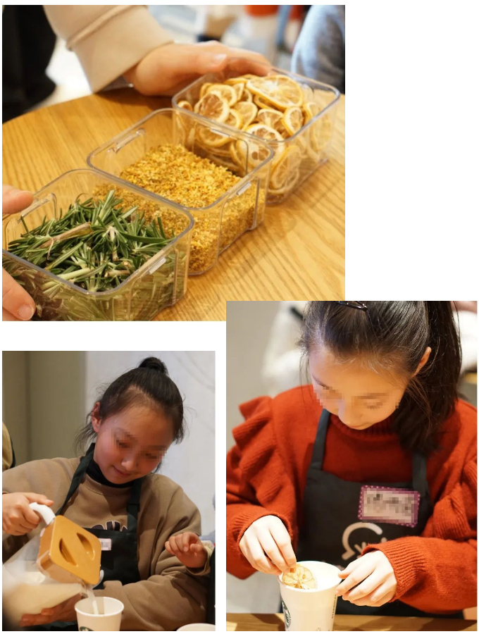 咖啡环绕的世界是怎样的呢?在星巴克咖啡师的带领下,孩子们‘漫步’咖啡世界,了解咖啡的起源、咖啡的发展,分辨不同的咖啡种类……孩子们认真聆听并对未知的领域充满好奇,时不时举手提问,展现旺盛的求知欲。
