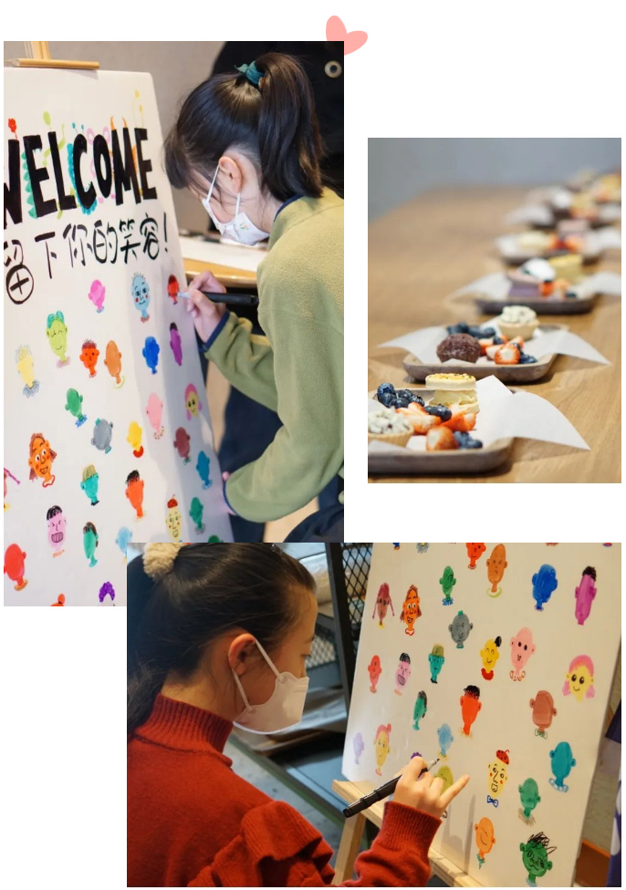 一早哥哥姐姐们就准备好小点心等待孩子们的到来~ 让入场也仪式满满,孩子们在画板上发挥创作力留下一个个笑脸。